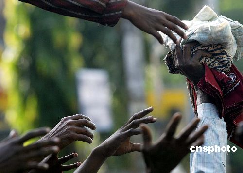 12月26日由印尼強(qiáng)震引發(fā)的猛烈海嘯,給印度、斯里蘭卡、泰國、印度尼西亞、馬爾代夫、馬來西亞等國家?guī)韲?yán)重災(zāi)難。各受災(zāi)國的災(zāi)后救援工作已經(jīng)全面展開,數(shù)百萬災(zāi)民急需幫助。圖為在印度災(zāi)區(qū),災(zāi)民在領(lǐng)取少得可憐的救濟(jì)物資。作者:Ic/cnsphoto