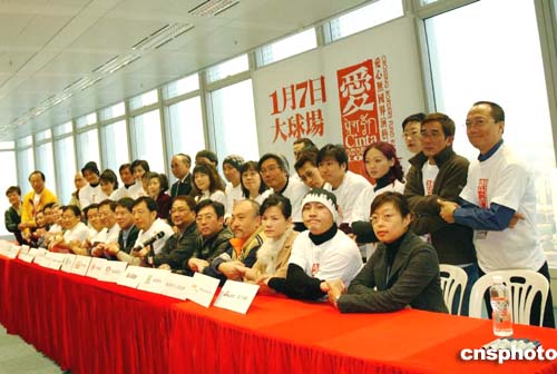 由香港演藝界發(fā)起于1月7日舉行的《愛心無國界》籌款表演,定于香港政府大球場(chǎng)舉行,1月1日,演藝界及多個(gè)團(tuán)體聯(lián)合在香港國際金融中心舉行發(fā)布會(huì),一眾出席嘉賓手拉手以示賑災(zāi)決心。作者:洪少葵