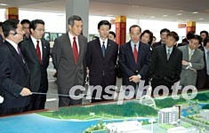 前來(lái)參加中新聯(lián)合協(xié)調(diào)理事會(huì)第七次會(huì)議的新加坡共和國(guó)副總理李顯龍五月十六日參觀了蘇州工業(yè)園區(qū)現(xiàn)代物流園、獨(dú)墅湖高等教育區(qū)、國(guó)際科技園以及和艦科技(蘇州)有限公司。圖為新加坡副總理李顯龍(左三)在獨(dú)墅湖高等教育區(qū)參觀。作者:蔣振江