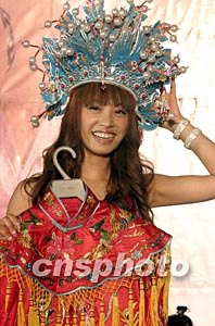 五月十七日,華人樂壇冠軍流行小天后蔡依林在北京舉行全新專輯《城堡》熱賣的慶功大會。蔡依林在現(xiàn)場戴上鳳冠,展示鳳袍來為自己打氣。作者:高遠(yuǎn)
