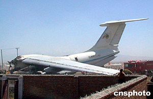 5月18日10時50分,阿塞拜疆一架伊爾76貨機(jī)在新疆烏魯木齊機(jī)場附近墜毀。這架貨機(jī)執(zhí)行太原經(jīng)停烏魯木齊至阿塞拜疆巴庫任務(wù),在烏魯木齊機(jī)場起飛兩分鐘后,墜落在跑道西頭約10公里處。機(jī)上共有7人遇難。圖為貨機(jī)失事現(xiàn)場。作者:汪金生