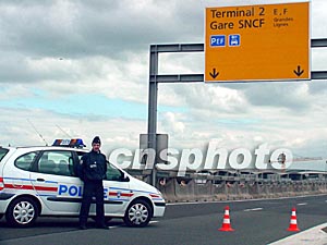 圖:法國(guó)警方當(dāng)天封鎖通往出事候機(jī)廳的通道