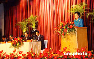 5月26日,香港著名藝人汪明荃盛裝在君悅酒店出席活動(dòng),與訪港的全國政協(xié)副主席、中共中央統(tǒng)戰(zhàn)部部長劉延?xùn)|見面。作者:洪少葵