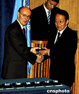 中國常駐聯(lián)合國代表王光亞在代表付清禮家屬接受勛章后,通過媒體向中國所有參與聯(lián)合國維和行動的人員致以崇高敬意和親切慰問。