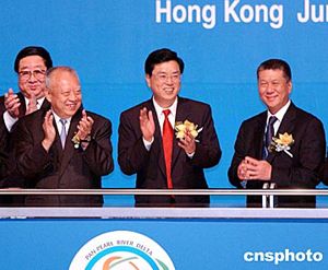 由香港特區(qū)行政長官董建華、廣東省委書記張德江、泛珠三角九個省、以及香港和澳門特區(qū)領(lǐng)導(dǎo)人主持亮燈儀式。作者:洪少葵