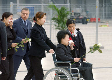 遇難者家屬獻(xiàn)花