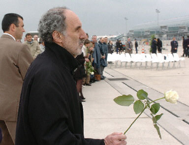 巴黎戴高樂機(jī)場(chǎng)候機(jī)樓設(shè)計(jì)師安德魯向遇難者獻(xiàn)花