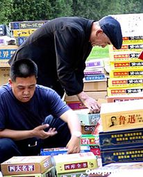六月三日,首屆北京地壇夏季書市二十余萬種琳瑯滿目的圖書、音像制品和電子軟件全部以超低價格亮相。不少展位在書市的第一天就開出了“跳樓價”,原價六百七十八元的中國四大名著,現(xiàn)價只要五十元,打折打到了一折以下。更驚人的是原價一千二百八十元的《資治通鑒》,也是五十元就能搬回家。作者:韓藝冰