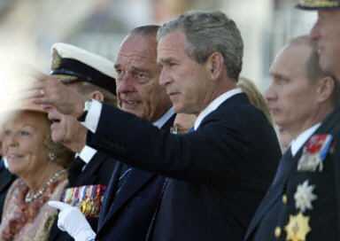據(jù)報(bào)道,參加這次慶典的領(lǐng)導(dǎo)人包括法國總統(tǒng)希拉克、美國總統(tǒng)布什、英國女王伊麗莎白二世和英國首相布萊爾、俄羅斯總統(tǒng)普京、德國總理施羅德等。其中德國領(lǐng)導(dǎo)人是第一次應(yīng)邀參加二戰(zhàn)關(guān)鍵紀(jì)念日的活動(dòng)。