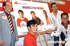 歌星譚詠麟、李克勤、余文樂6月9日在香港出席義務(wù)工作發(fā)展局舉行《全民義工參與賣旗日‧榮譽(yù)義工大使委任儀式》,三位榮譽(yù)義工大使于委任狀上簽名,協(xié)助推廣活動。作者:鄧慶樂