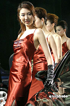 6月9日是2004年北京國(guó)際汽車展覽會(huì)開幕前一天的新聞日,一批名模出現(xiàn)在名車展臺(tái),在各大汽車廠商推出的精彩節(jié)目中亮相。魯谷 攝