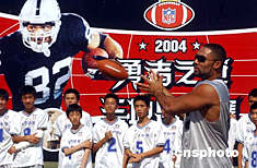 六月十一日,來自美國國家橄欖球大聯(lián)盟的明星球員Teyo Johnson在北京對(duì)此間參加首屆美式腰旗橄欖球總決賽的中國小運(yùn)動(dòng)員進(jìn)行技術(shù)指導(dǎo)。美式腰旗橄欖球是源于美國國家橄欖球大聯(lián)盟(NFL)的一項(xiàng)大眾化運(yùn)動(dòng),旨在將美式橄欖球的基礎(chǔ)規(guī)則和技巧介紹給全世界八至十四歲的青少年。目前,這項(xiàng)運(yùn)動(dòng)在世界三十多個(gè)國家的青少年中廣為流行。中新社記者:武仲林
