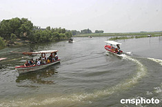 二零零四年春夏以來,素有“華北明珠”之稱的河北白洋淀不斷引外水?dāng)U大水勢(shì),發(fā)展水上旅游。中新社記者:史利