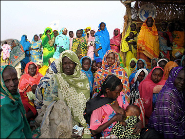 中新網(wǎng)6月14日電 在蘇丹達爾福爾地區(qū)的一座難民營,難民們正在等待接受救濟食品的發(fā)放。(春風)