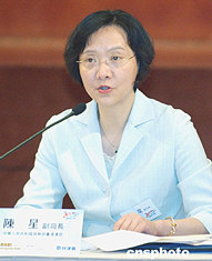 為紀(jì)念CEPA簽署一周年,及進(jìn)一步推動(dòng)香港與內(nèi)地的經(jīng)濟(jì)合作,民建聯(lián)十四日在會(huì)展中心舉行“拓展商機(jī) 互利雙贏”研討會(huì),中華人民共和國商務(wù)部臺港澳司陳星副司長講述實(shí)施一年來所取得的成效和今后擴(kuò)展的措施。中新社記者:趙振清