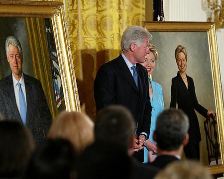 在白宮東廳所舉行的總統(tǒng)夫婦畫像懸掛儀式上,布什稱贊克林頓作為一名為公眾服務的政治界人士“向人們展示了令人難以置信的活力以及偉大的個人號召力”。布什在發(fā)表講話時,克林頓就坐在他面前的第一排座位之上,布什繼續(xù)說道:“作為美國總統(tǒng),他表現(xiàn)出了在公共政策方面的深謀遠慮以及遠見卓識,他在危難當中對人們表現(xiàn)出了偉大的感情,他所表現(xiàn)出的高瞻遠矚是身為美國公民的人們所樂意看到的。比爾-克林頓將總會看到日子一天比一天好,美國人民也知道他正在努力工作,以使美好的日子盡快到來。在八年擔任美國總統(tǒng)的時間之內(nèi),毫無疑問的一點是比爾-克林頓非常熱愛他的工作,他給白宮帶來了活力與樂趣。他是一個充滿激情而又待人熱情的人,他可以做出很好的成績并最終將自己所追求的服務大眾的事業(yè)繼續(xù)推向前進!辈际苍谥v話當中還列舉了克林頓總統(tǒng)在任上的種種業(yè)績。