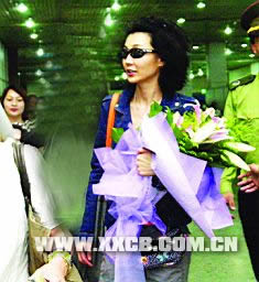 之后大約5分鐘,張曼玉在一位女助理的陪同下走出,看上去像沒有化妝,瘦削的臉上戴著一副大大的黑色墨鏡,蓬松的細(xì)卷發(fā)將臉襯托得更。灰患W型馓准右粭l灰色七分褲,右肩則背著一個(gè)碩大的深灰色背包,看上去顯得十分高挑單薄。看到外面有這么多攝像機(jī)在恭候,張曼玉顯得有些驚訝,但很快就恢復(fù)了平靜,面帶微笑地在十幾名保安和武警的護(hù)衛(wèi)下步入接她的專車,全程沒有說一句話。記者一路尾隨張曼玉的小車準(zhǔn)備跟她回酒店,但剛剛跟出機(jī)場(chǎng)大門就被發(fā)現(xiàn),張曼玉的車立即警覺地停在馬路旁邊不肯走了,記者只能先行告退。(記者瞿穎華)