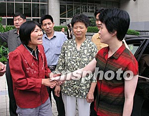 十六日中午,江西廣豐縣政府一行六人專程赴濟慰問正在山東省立醫(yī)院接受救治的在阿受傷工人及他們的家屬。圖為廣豐縣副縣長祝美清(右一)與受傷工人蔣昌泉的親家屬交談。作者:胡洪林