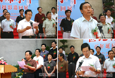 中國新聞社副總編輯田惠明、中共宜昌市委副書記文成國、市委常委、宣傳部長趙舉海、市人大副主任肖道根、市政府副市長廖達(dá)鳳、市政協(xié)主席李泉、解放軍宜昌市軍分區(qū)司令員張建國、三峽大學(xué)、武警二支隊(duì)負(fù)責(zé)人的代表、中國新聞社湖北分社社長章敦華等出席首展儀式并且為首展剪彩。首展儀式由趙舉海主持,文成國、田惠明和各界代表先后在儀式上發(fā)表講話。