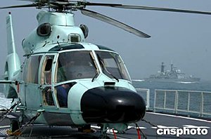 北海艦隊(duì)“哈爾濱”號(hào)導(dǎo)彈驅(qū)逐艦、“洪澤湖”號(hào)綜合補(bǔ)給艦、“海豚”艦載直升機(jī)和英國皇家海軍“?巳亍碧(hào)導(dǎo)彈驅(qū)逐艦、“山貓”艦載直升機(jī)參加此次非傳統(tǒng)安全領(lǐng)域的聯(lián)合演習(xí)。