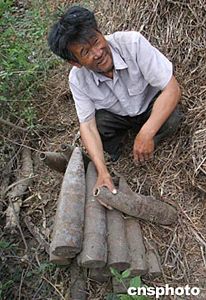 十九日十時左右,有關(guān)專家趕到了賈衍教家。經(jīng)過初步鑒定,賈家的炮彈均和頭站村日軍遺留毒氣彈相同。有關(guān)負責(zé)人告訴賈衍教:“千萬不要動炮彈,也不要讓人靠近炮彈,幾天之內(nèi)將有專人將這些毒氣彈運走!