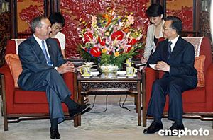 圖:溫家寶會見美國商務(wù)部長埃文斯