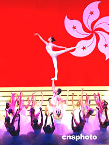 其他精彩節(jié)目還包括大型舞蹈“海燕”、“祝!焙汀白鎳垯z閱”,大型雜技“東方的天鵝”和“收獲”,精彩絕倫的演出令人目不暇給,引來頻頻喝彩。解放軍駐香港部隊儀仗隊一百五十名官兵,也難得親臨現(xiàn)場作精彩表演,齊整的隊列令觀眾嘆為觀止。