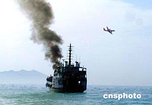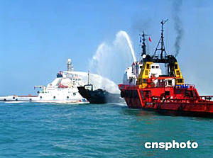 今天參加聯(lián)合搜救演習(xí)的船只共有二十九艘、另有香港飛行服務(wù)隊兩架飛機(jī)參加行動。按照演習(xí)預(yù)定的項目,假設(shè)在南海某一海域發(fā)生船舶爆炸起火事故,十二名船員棄船逃生,船上有燃油溢出污染海面;另一艘船舶沉沒,十余名船員落水。海南省海上搜救中心接到報告后,立即啟動應(yīng)急搜救程序,隨即展開了一場海陸空全方位的海上搜尋救助、海上消防滅火和海上溢油應(yīng)急行動。結(jié)果成功營救了所有落水船員,并對遇險船只進(jìn)行了消防、對海面進(jìn)行了清理污染的行動。