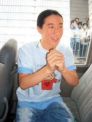 剛廿一歲的祖名,仍未脫孩子氣,當(dāng)他上車接受傳媒訪問時(shí),一見到一大班記者在恭候他,立即叫救命。說到他剛出道即受重用,他坦言自己好幸運(yùn),所以會(huì)盡力做好自己。雖然他才出道,但昨日現(xiàn)場(chǎng)已見有他的Fans舉牌為他打氣,他笑道:“我見Twins的Fans多一些!闭劦叫赂璨シ怕什诲e(cuò),祖名說:“觀眾不喜歡也不打緊,遲些我還會(huì)作曲,希望做到大家都喜歡為止!彼麑⒂诰旁峦瞥鲂鲁,雖然已落實(shí)臺(tái)灣的唱片公司,但香港的還未知,問他是否簽“英皇”,他孩子氣道:“我甚么都不知道,因?yàn)閶屵涫俏医?jīng)理人!倍母枨菄(guó)語歌,只有一首英文歌,問他可會(huì)向歐美方面發(fā)行?他表示沒想過。