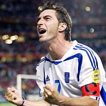 中新網(wǎng)7月6日電 2004年歐錦賽隨著希臘隊(duì)的奪冠而圓滿結(jié)束。賽后,希臘隊(duì)隊(duì)長(zhǎng)、中場(chǎng)球員扎戈拉基斯被評(píng)選為本屆比賽的最佳球員。