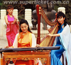 瑟:中國原始的絲弦樂器之一,共有二十五根弦!对娊(jīng)》中有記載"窈窕淑女,琴瑟友之","我有嘉賓,鼓瑟鼓琴"。瑟曾銷聲匿跡千年之久,而今“幽蘭漢樂”將傳說中的聲音再次呈現(xiàn)于舞臺之上,琴瑟合鳴,樂聲如流水,如鳳鳴,如南風,如月行,引我們走進大自然深深的芬芳里。箜篌:中國古老的彈弦樂器,始于漢代,歷史悠久;音域?qū)拸V、音色柔美清澈,表現(xiàn)力強。唐時期曾用于西涼、龜茲、疏勒、高麗、天竺諸樂中。明代后失傳達300年之久。