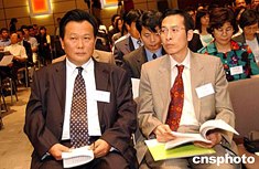 為了讓香港服務(wù)提供者進(jìn)一步了解在CEPA框架下在內(nèi)地提供服務(wù)的申請程序及要求,工商及科技局和廣東省經(jīng)濟(jì)貿(mào)易委員會(huì)于7月8日在香港合辦咨詢會(huì)。圖為廣東省經(jīng)濟(jì)貿(mào)易委員會(huì)巡視員巫開立[左]、廣東省司法廳副廳長黃武出席咨詢會(huì)。作者:洪少葵
