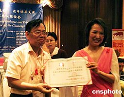 著名的美籍華人歌唱家鄭緒嵐七月十四日在泰國曼谷召開的世界艾滋病全球華人聯(lián)誼會上被聘為中國預(yù)防艾滋病宣傳員,中國預(yù)防性病艾滋病基金會會長曾毅院士向她頒發(fā)了聘書。這次主題為“交流、合作、聯(lián)誼,攜手迎戰(zhàn)艾滋”的聯(lián)誼會是由中國預(yù)防性病艾滋病基金會、香港艾滋病基金會、中國人口宣教中心等四家機構(gòu)共同主辦的。中新社記者:曾利明