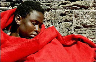 中新網(wǎng)7月20日電 據(jù)法新社報道,一名偷渡客正在等著被押送到西班牙南部港口城市塔里法,并從那里遣返回國。這名偷渡客是和其他人乘坐一艘小船,經(jīng)直布羅陀海峽,偷渡進入西班牙的,后被西班牙警方抓獲。(春風(fēng))