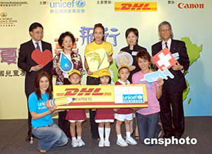 聯(lián)合國兒童基金會“教育大使”楊采妮7月22日在香港出席聯(lián)合國兒童基金會舉行之《寧夏童心夢飛行》記者會,楊采妮與梁詠琪、莫文蔚將攜手于八月前往內(nèi)地寧夏地區(qū)親善探訪當?shù)貎和。?lián)合國兒童基金會香港委員會主席馮慶彪(右一)、副主席陳方安生(左二)與三位大使聯(lián)同贊助商舉行儀式,并呼吁各界踴躍捐款。作者:鄧慶樂