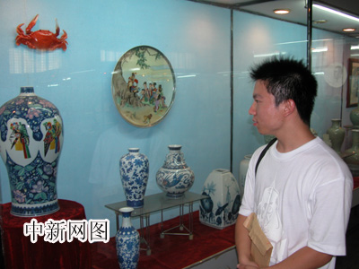第二屆“網(wǎng)上河北行”記者參觀唐山陶瓷股份有限公司陶瓷展廳。(秦欣攝)