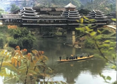 據(jù)新華社報道,距黎平縣108公里的地坪風(fēng)雨橋又稱花橋,是貴州境內(nèi)規(guī)模最大的一座侗族風(fēng)雨橋。這座風(fēng)雨橋始建于清光緒九年(1883年),迄今已有100多年的歷史。橋廊上建有3座橋樓,不用一釘一鉚,工藝精湛,是侗族建筑的杰出代表,2001年被列為國家級重點(diǎn)文物保護(hù)單位。