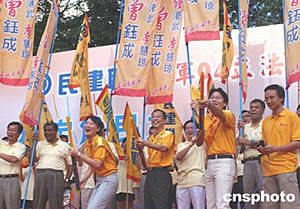 中新社香港七月二十五日電 被此間輿論公認(rèn)為香港三大政黨之一的民建聯(lián)今天表示,若要實(shí)現(xiàn)特區(qū)行政長(zhǎng)官和立法會(huì)在二O一二年“雙普選”,需要滿足四個(gè)條件。民建聯(lián)下午舉行誓師大會(huì),場(chǎng)面熱烈,再度喊響其參選口號(hào)──“穩(wěn)定為民主,和諧建未來!泵窠(lián)主席馬力自信“會(huì)爭(zhēng)取到越來越多市民的支持”。