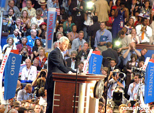 中新網(wǎng)7月26日電 據(jù)路透社報道,美國民主黨全國代表大會26日在波士頓開幕,以前總統(tǒng)克林頓為首的民主黨老將們以全明星陣容亮相開幕式,為該黨總統(tǒng)侯選人克里入主白宮站臺助選。除克林頓外,在開幕式上發(fā)表講話的還包括前總統(tǒng)卡特、前副總統(tǒng)戈爾及紐約州參議員希拉里。
