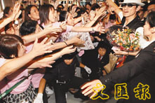 中新網(wǎng)7月27日電 據(jù)香港文匯報(bào)報(bào)道,劉德華昨早飛往日本為《十面埋伏》展開宣傳,雖然他乘坐的班機(jī)要到下午四時(shí)半才抵達(dá)日本機(jī)場(chǎng),但其三百名歌影迷卻早在下午一時(shí)已到機(jī)場(chǎng)等候偶像。而機(jī)場(chǎng)方面的保安,見到如此多Fans也被嚇著,當(dāng)知道是華仔即將到達(dá)時(shí),立即加派十五名保安,并架起圍欄限制歌迷等候的位置,以免造成混亂。