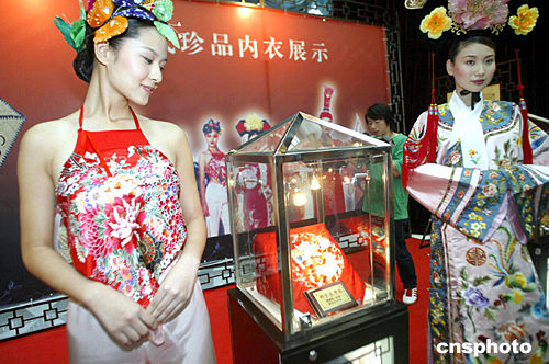 7月27日,大型后現代多媒體舞臺劇《尋衣記——云縷心衣歐迪芬》在北京舉行新聞發(fā)布會,主創(chuàng)人員及部分演員與媒體見面,更有清代珍品內衣展以及身著古裝的模特為新聞發(fā)布會助興!秾ひ掠洝穼⒂7月30日、31日在北京保利劇院上演。中新社記者:盛佳鵬