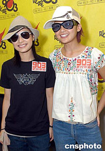 人氣組合Twins兩名成員鐘欣桐(阿嬌)、蔡卓妍(阿Sa)7月27日在香港出席商業(yè)電臺《叱咤樂壇》錄音訪問。作者:鄧慶樂