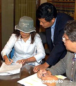 當?shù)貢r間七月二十七日中午,在美國尼亞加拉瀑布區(qū)游玩時遭美國移民局警察毆打的中國游客趙燕前往律師樓填寫“紐約州犯罪受害人福利申請表”,這是趙燕被毆后在尋求賠償?shù)牡缆飞线~出的第一步。中新社記者:趙海燕