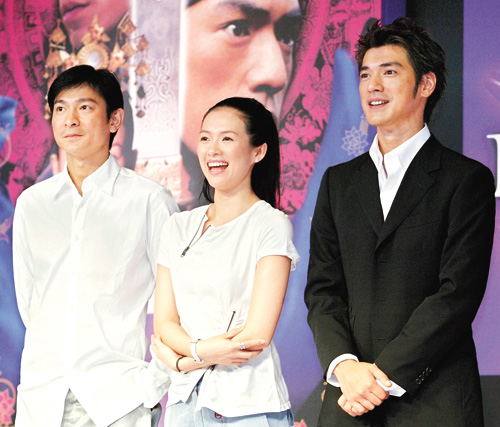 中新網7月28日電 據香港大公報報道,昨日,《十面埋伏》在東京六本木舉行盛大記者會,導演張藝謀率領三位主角劉德華、金城武及章子怡出席,吸引大批傳媒到訪,多達五百人,非常熱鬧。