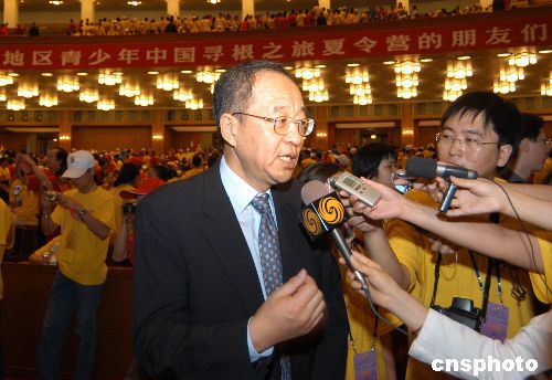 七月二十七日上午,“二零零四年海外華裔及港澳地區(qū)青少年中國(guó)尋根之旅夏令營(yíng)”開(kāi)營(yíng)儀式在北京人民大會(huì)堂隆重舉行,來(lái)自三十六個(gè)國(guó)家和港澳地區(qū)的近四千名青少年參加了開(kāi)營(yíng)式。國(guó)務(wù)院僑辦副主任劉澤彭在開(kāi)營(yíng)式后成為媒體采訪焦點(diǎn)。作者:徐曦弋