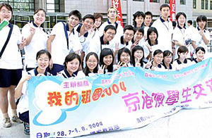 二○○四年七月二十八日,首屆“我的祖國——京港澳學(xué)生交流營2004”在北京語言大學(xué)拉開帷幕。來自香港、澳門的二百名學(xué)生與北京的一百名學(xué)生代表將共同參加為期一周的交流活動(dòng)。圖為來自香港、澳門、北京的學(xué)生代表在開營儀式上合影留念。中新社記者:張勤