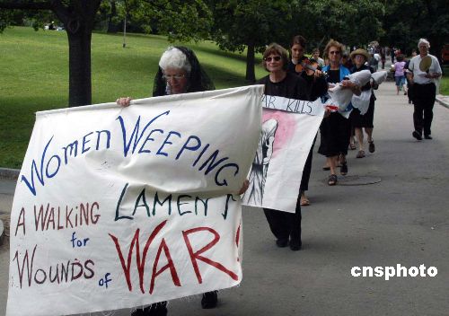 美國民主黨全國大會舉辦之際,波士頓街頭常有各種訴求的游行示威。這是一個名為“婦女哭泣”的行走活動穿過市中心的波士頓公共公園,她們穿黑衣、抱著襁褓,表達(dá)對戰(zhàn)爭摧殘生命的不滿。作者:余東暉