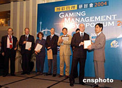 由澳門大學(xué)主辦的“博彩管理研討會2004”,三十一日在澳門凱悅酒店舉行,十二位來自世界各地的專家、學(xué)者就博彩業(yè)之經(jīng)濟、社會及法規(guī)等問題發(fā)表了專題發(fā)言。作者:梁永強