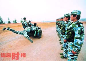 在海軍陸戰(zhàn)隊(duì),幾乎所有的訓(xùn)練課目都是直接挑戰(zhàn)生命極限,沖擊生命禁區(qū)。美國太平洋艦隊(duì)司令員麥基上將曾稱贊中國海軍陸戰(zhàn)隊(duì)的訓(xùn)練機(jī)械和標(biāo)準(zhǔn)是世界一流。