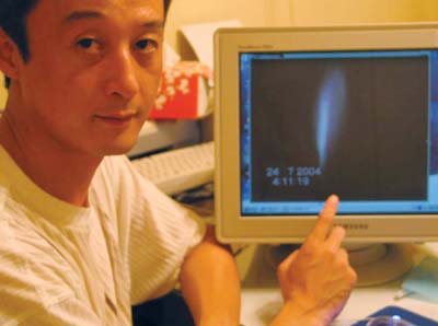 中新網(wǎng)8月1日電 7月24日凌晨,家住青島安達(dá)路24號(hào)的康曉輝在天空發(fā)現(xiàn)一個(gè)“不明飛行物”,并用家用攝像機(jī)拍下了20多分鐘的錄像。空中究竟是何物?幾天來,他一直想破解這個(gè)謎。31日上午,天文專家認(rèn)定,他拍到的是“UFO”,即“不明飛行物”。